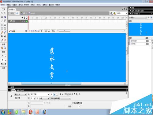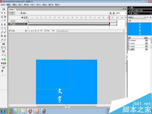 8、在圖層1下方新建圖層2,將wenzi1圖形元件拖拽到舞臺。