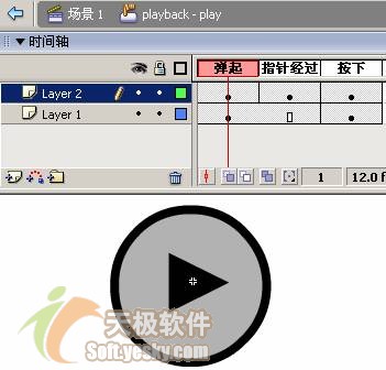 為了使音樂在開始處于未播放狀態,選中音樂層第一幀,在“動作面板”中加入: stop(); 命令。