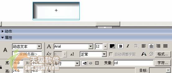 用鼠標單擊“最前”按鈕將其選中,然后打開“動作”面板,在右方動作命令行中輸入: