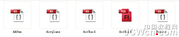 AirRaid.fla文件:是主文件,分為5個圖層3幀,幀上有代碼,綁定了文檔類 AirRaid.as 。圖:界面元素