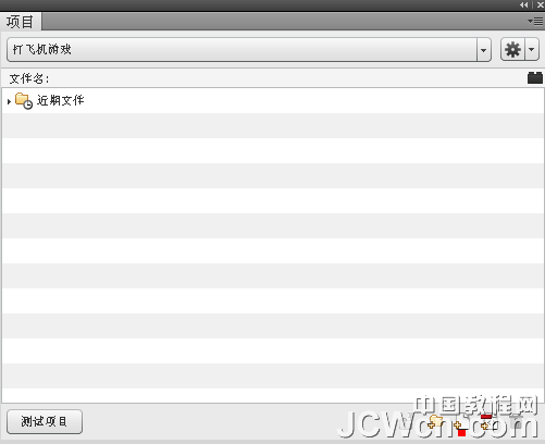 2、點(diǎn)擊右邊的第一個三角按鈕(項目),在下拉菜單中選"新建項目"。在彈出新建項目面板項目名稱:填入項目名稱。在根文件夾:項中點(diǎn)擊右邊的瀏覽按鈕,瀏覽到準(zhǔn)備存放項目的目錄,按確定。在ActionScript版本:選ActionScript 3.0 。單擊"創(chuàng)建項目"按鈕,這樣項目就建好了。圖:項目面板