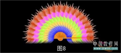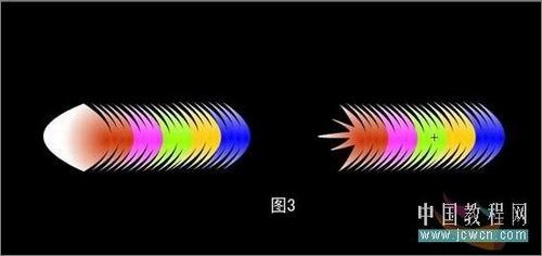 5、選中每一組用方向鍵向第一組靠攏,形成一個整體。用選擇工具在羽毛的頂部拉成一個球形,然后按著Ait鍵調節形狀,如圖3: