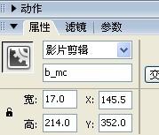 把它的實例名稱設置為b_mc,最后寫下如下代碼: