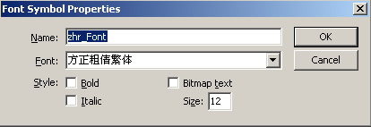 這樣我們的做法是,在Flash cs3里來做字體共享庫,同樣在庫里新建一個(gè)字體