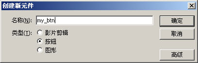1、新建一個元件"my_btn",用于在場景中響應鼠標事件的按鈕。