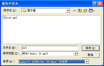 這是因為雖然選擇的音樂文件是MP3格式的,但并不是標準的MP3音頻格式,或者說不是Flash MX 2004支持的MP3音頻格式,這也需要借助第三方軟件轉換成可以導入到Flash的MP3格式。例如Gold Wave、Cool Edit、Sound Forge等。在借助第三方軟件轉換時,注意采樣速率的選擇,采樣率就是將自然界中的模擬聲音轉換到計算機上時的頻率。例如:44.1kHz采樣率指的是聲音每秒鐘被采樣44100次。Flash支持的采樣速率為44.1kHz、22.05kHz、11.025kHz。 采樣率選擇越高,音樂的音質效果就越好,但是得到的聲音文件也越大。我們常聽的音樂CD就使用了44.1kHz的采樣率。采樣率為11.025kHz的音樂文件體積比較小,但是音質效果不是很好。如果你需要特殊好的音質效果可以選擇44.1kHz的采樣率。通常在轉換時選擇采樣率為“Layer-3,22.05kH ,16位,立體聲”的音頻格式,這樣就能得到比較理想的效果,而且文件的體積也不會很大,如圖13-1-4所示。