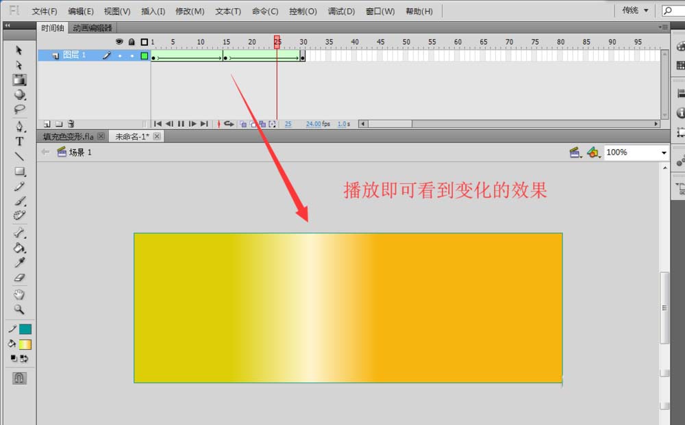7、設置完成之后播放時間軸,一個顏色不斷變化的動態效果就完成了。現在就可以進行輸出保存了。