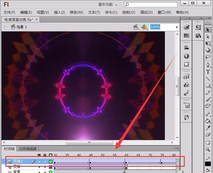 11、一個簡單的電音背景動畫就做好了,接著插入電音文件就可以了。