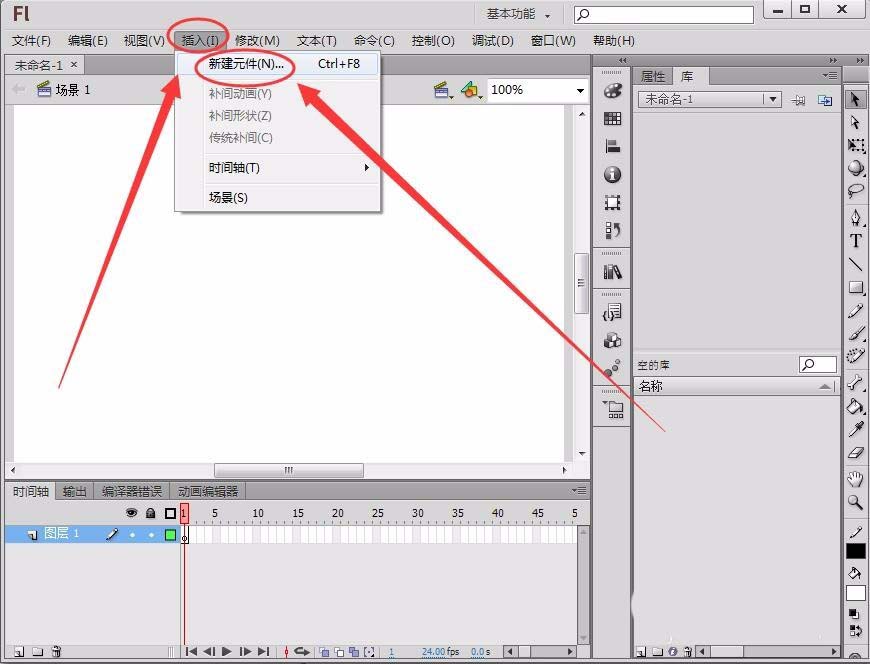 4、單擊“插入”---->“新建元件”,創建一個影片剪輯元件“進度”。