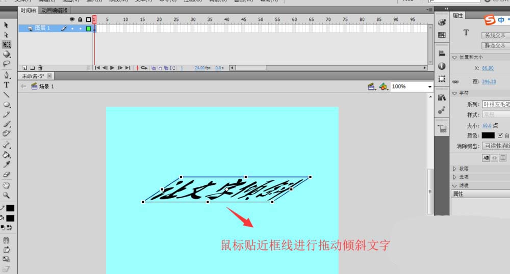 flash怎么制作傾斜旋轉的文字動畫效果?