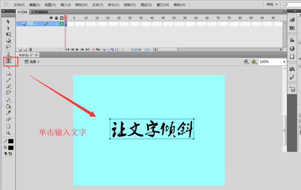 fllash中輸入的文本想要添加傾斜效果,該怎么制作傾斜字體呢?下面我們就來看看詳細的教程。