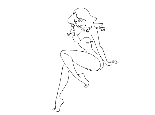 8、最后將美女的頭部及胸部和身體全部填充為黑色,這樣我們的長發美女就畫好了,如圖所示: