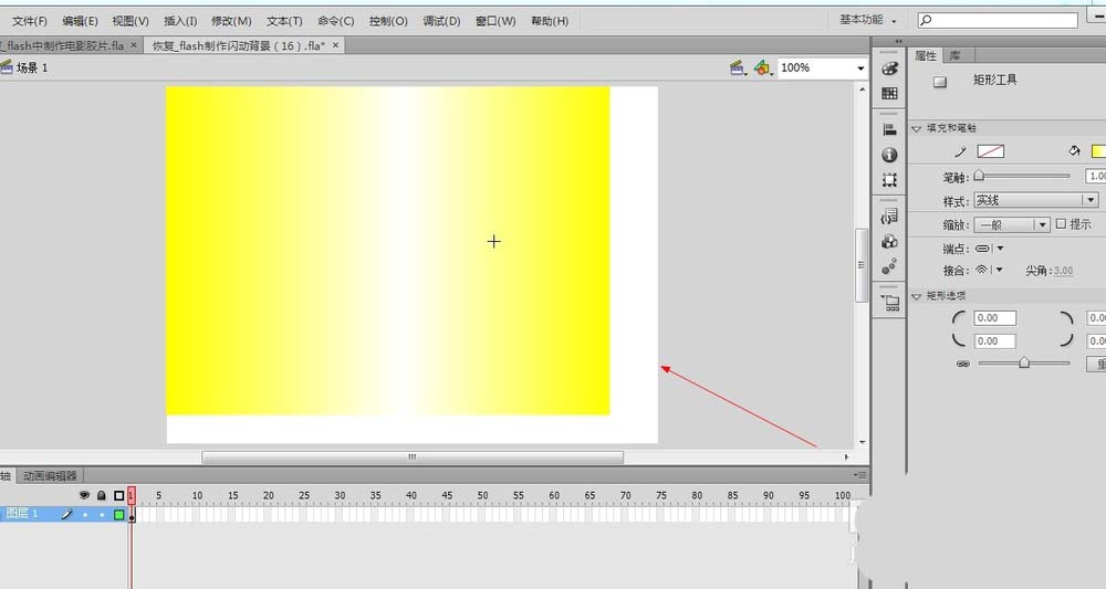 4、如圖所示,選擇好顏色之后,我們就用這個矩形工具,直接就可以繪制出這個具有黃色到白色再到黃色的漸變色矩形了。
