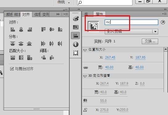 1、需要先給影片剪輯設(shè)置實(shí)例名mc