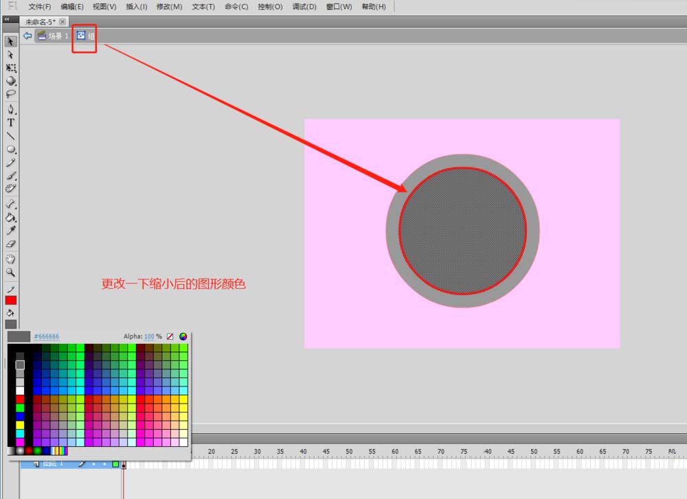 4、雙擊縮小后的正圓,進入組合圖形內部,更改其填充顏色。