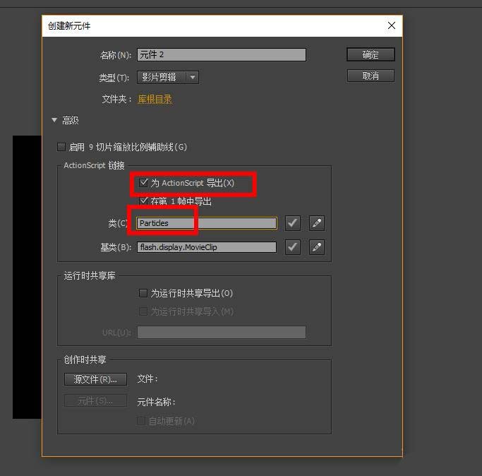 3、設置這個影片剪輯的鏈接屬性為:Pflashs