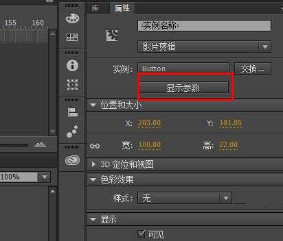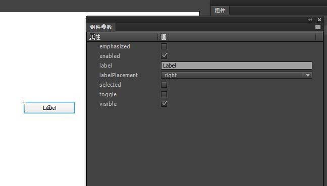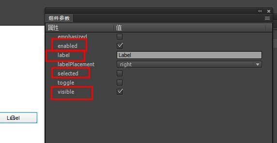 5、默認(rèn)按鈕上的字是Label。選擇這個(gè)按鈕,在屬性面板中點(diǎn)擊顯示參數(shù),打開(kāi)參數(shù)面板。