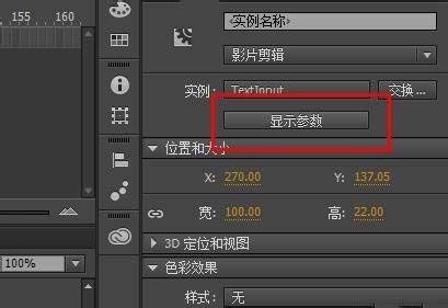 4、選擇組件,在屬性面板點(diǎn)擊顯示參數(shù)。