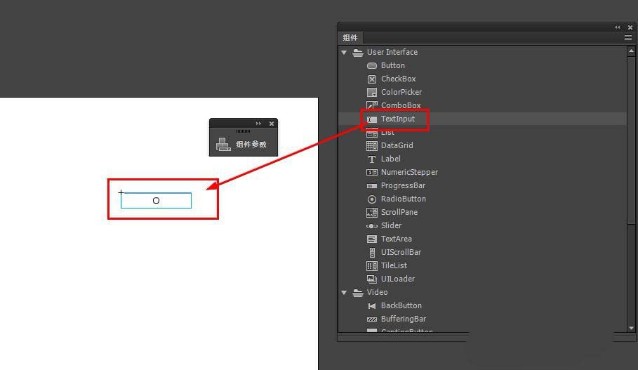 3、找到TextInput組件,并拖動(dòng)到舞臺(tái)上。
