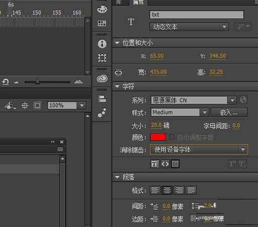 7、最后放一個(gè)動(dòng)態(tài)文本,設(shè)置實(shí)例名為txt,其它設(shè)置如圖。