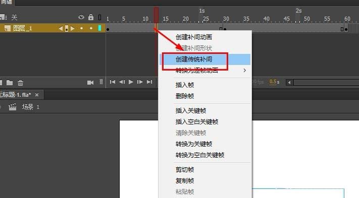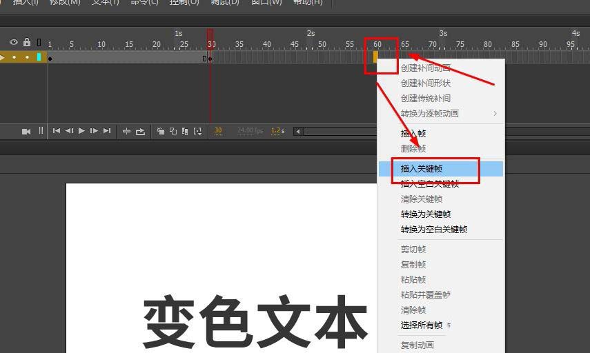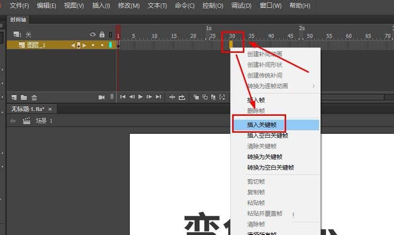 7、在30幀前和30幀后右鍵選擇創建傳統補間