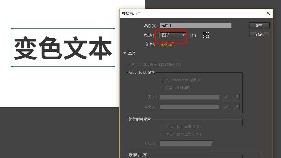 3、選擇文本右鍵轉換為圖形元件或影片剪輯