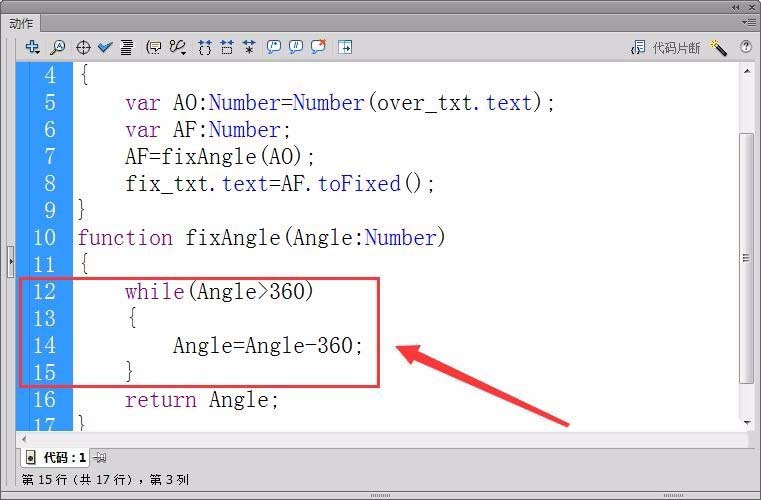 9、最后,定義函數fixAngle,實現大于360度角轉換為360度以內。