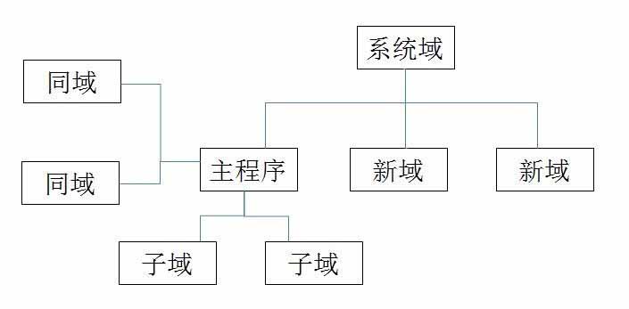 4、系統域指的是Flash播放器的核心類定義,在系統域的下面就是主程序,不同加載域的結構如下圖所示。