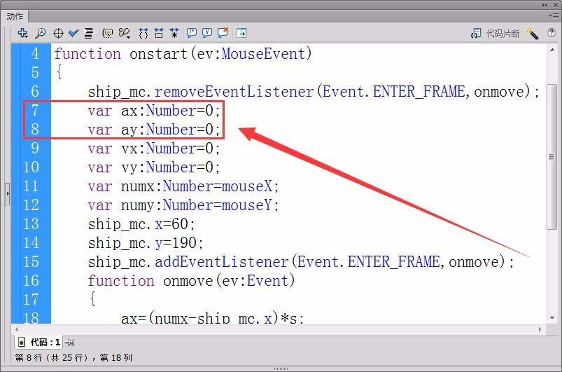 7、定義輪船的加速度ax和ay,設(shè)置初始值為0。