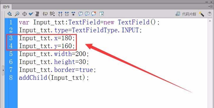 5、接著,設置輸入文本框的左上方的坐標,本例坐標值為(180,160)。