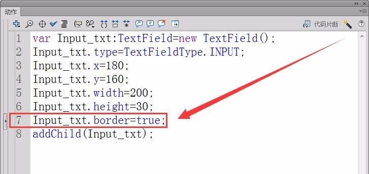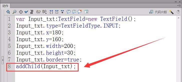 8、將輸入文本實例Input_txt,添加到顯示列表中,使它能夠在舞臺正常顯示。