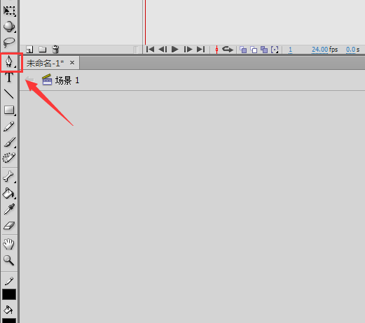 2、打開flash之后在工具箱內找到鋼筆工具,如圖所示: