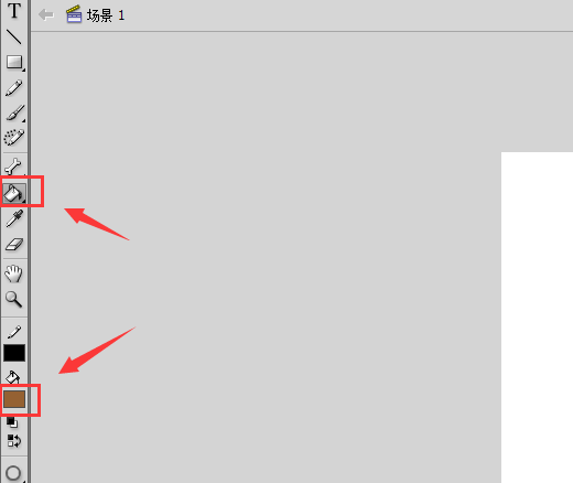7、再在工具箱內找到顏料桶工具,并設置填充色為棕色,如圖所示: