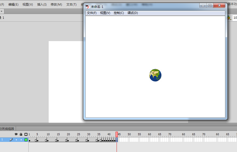 6、選擇控制-測試影片-在Flash中測試影片,小小的地球從高出落下,在地上摔成碎片。