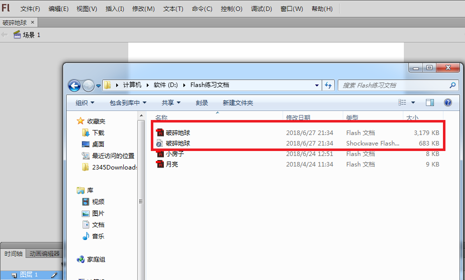 8、文件-導(dǎo)出格式,破碎地球?yàn)?swf文件,此種格式不可編輯狀態(tài)。