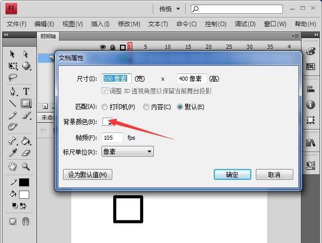 6、畫出的矩形就為黑框白底,為了看清效果,可以按Ctrl+J調出文檔屬性,將背景顏色更改為其它任意顏色。