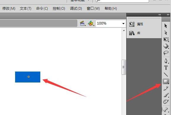 3、進入元件編輯界面,點擊右側工具欄上的形狀工具,在界面上拉出一個長方形按鈕。(可以在這里繪制更漂亮的按鈕)