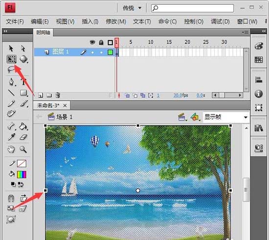 Flash中中想要制作一個傳統的補間動畫,該怎么制作一個運動的圓形,而透過圓形可以看到底下的風景圖,該怎么制作呢?下面我們就來看看詳細的教程。