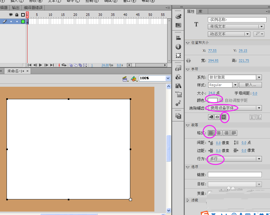 4、選擇文本工具插入一個動態文本,并設置如下屬性: