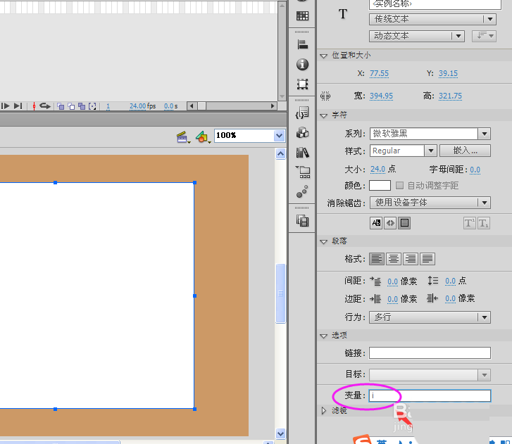 6、寫好代碼后,給剛剛建立的動態文本,取一個變量名,這里小編用“i”來表示...