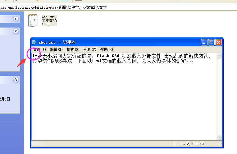 8、保存文檔后,返回flash,將此文件保存在與abc.txt文檔相同的文件夾下,如圖所示: