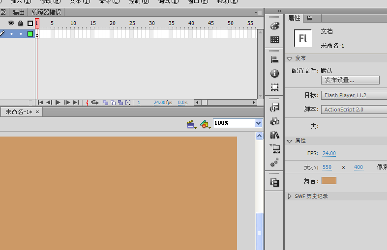 3、打開flash cs6,新建一個AS2.0的文件,將舞臺的背景色做一個更改,以便更好的觀察文字...