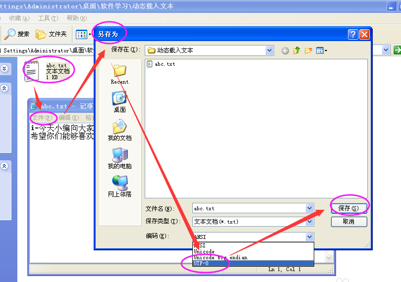 將abc.txt文檔另存為UTF-8的編碼方法或者其他的編碼方法...