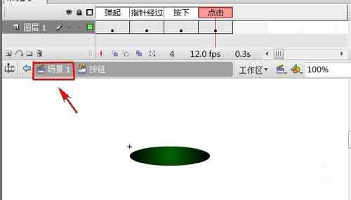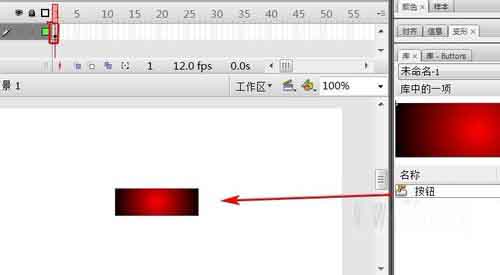 13、選擇“圖層1”第1幀,把按鈕元件拖到場景中。