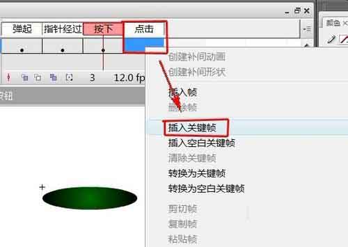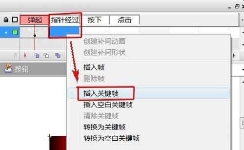 單擊“指針經(jīng)過”,右鍵選擇“插入關(guān)鍵幀”