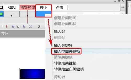9選擇“按下”,右鍵選擇“插入空白關(guān)鍵幀”