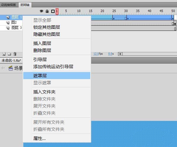 10、新建圖層3,拉至所有圖層下方,將作為背景圖的圖片導入,我這里是圖1。回到圖層1,右鍵——遮罩層,將該層轉(zhuǎn)換。完成圖1至圖2的轉(zhuǎn)換動畫。