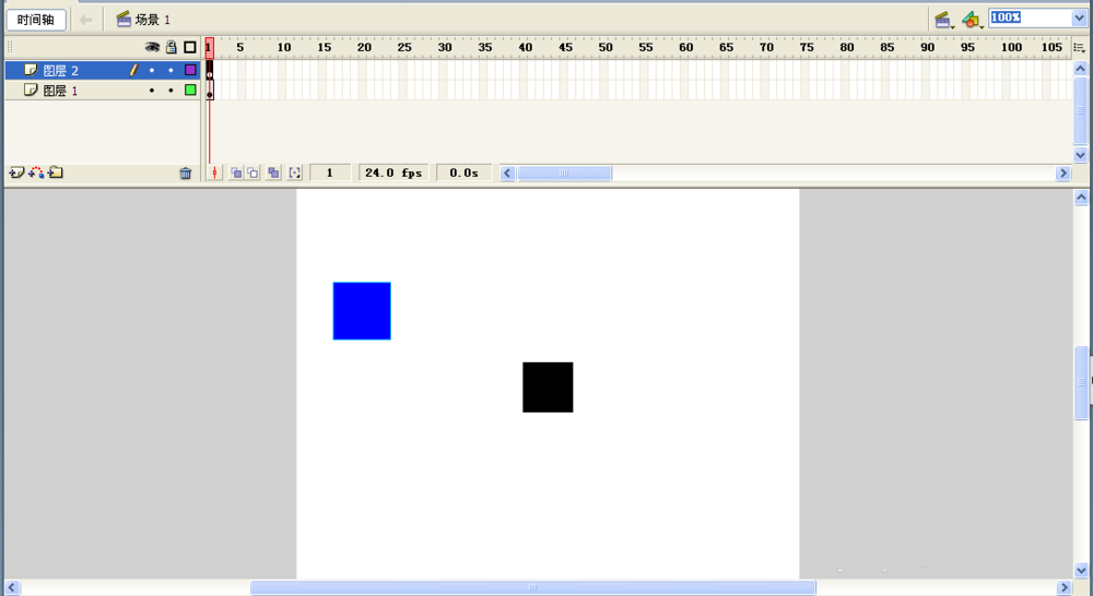 2、在舞臺中畫一個大小50*50的無筆觸正方形