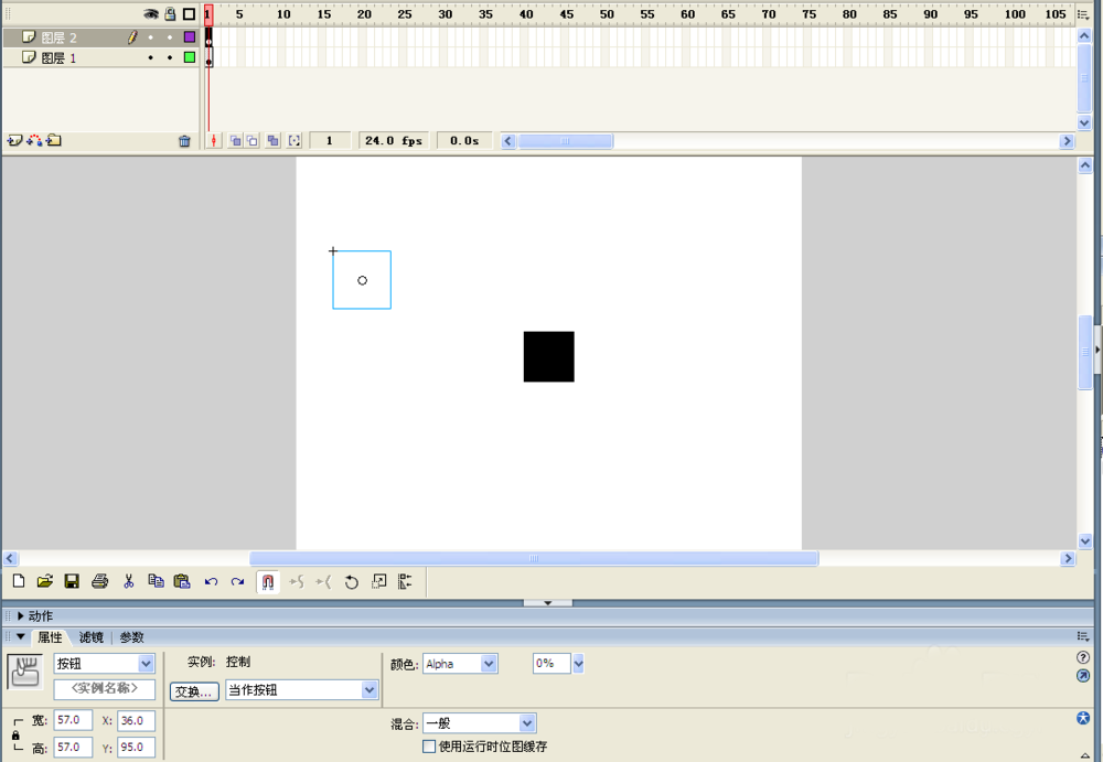 10、按F9退出編輯,然后再次選中按鈕元件,在屬性欄中將顏色選項選為Alpha,把值設為0%