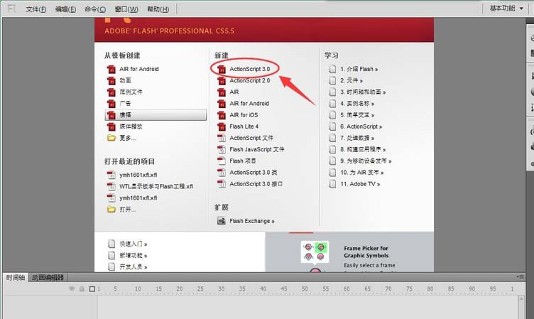2、打開軟件之后就會(huì)提示新建工程,然后選擇新建一個(gè)ActionScript3.0工程,單擊鼠標(biāo)左鍵新建工程。
